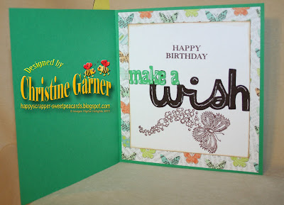 I colored my stamp with colored pencils. The butterfly and sentiment was cut out with my Circut Expressions using The Animal Kingdom and Sweet Treats Cartridge. I embossed some embellishment for the side. I added some brown and peach flowers under my butterfly.